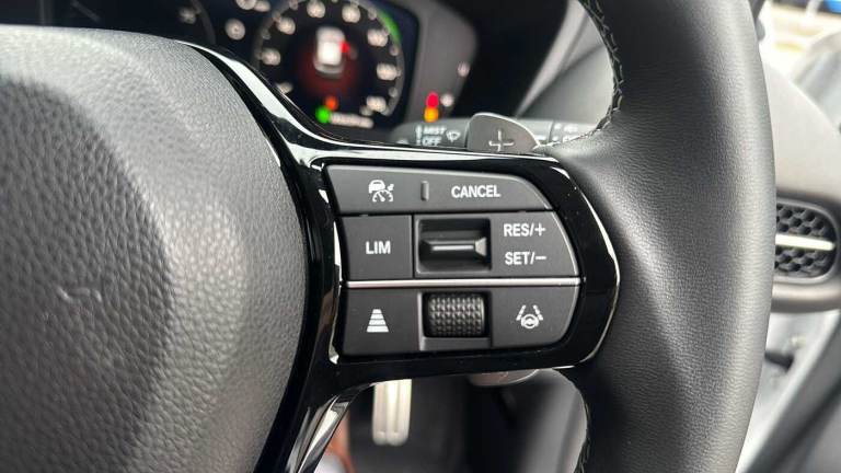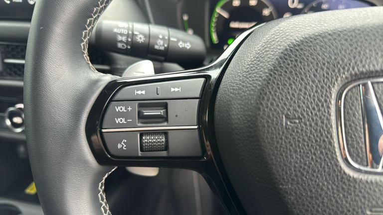 ..Honda CONNECT with Navigation 9'' touchscreen, AM/FM/DAB, Apple Carplay and Android Auto, live traffic info, Privacy glass, LED Headlights, Adaptive cruise control, Lane departure warning system, Wireless apple carplay, Handfree power tailgate with kick sensor and walk away close, Exterior Features, Auto wipers, Front and rear electric windows, Privacy glass, Rain sensor, Rear wiper, Vehicle stability assist, Black paint honeycomb design grille, Black painting side sill/fender garnish, Black Shark-fin antenna, Body colour door handles, Body colour spoiler, Bumper skid garnish painting dark gun metallic, Exhaust tailpipe finisher, Front and rear lower bumper in painting black, High gloss black window garnish, Rear bumper build in finisher, Rear side wing doors, Sport front bumper, Auto headlights, Front LED Indicator lights, Headlight auto on/off timer, High beam assist, LED daytime running lights, LED Headlights, LED rear lights, Third brake light, Safety, ABS/EBD, Brake assist function, Brake hold function, Collision mitigation braking system, Electronic parking brake with auto hold, Front and rear collision mitigation throttle control, Hill descent control, Hill start assist, Low speed brake system, 4 x front and 4 x rear parking sensors, Adaptive cruise control, Adjustable speed limiter, Agile handling assist, Drive mode (Econ, Normal, Snow, Sport), Electric power steering, Emergency stop signalling system, Forward collision warning, HEV mode, Idle stop, Intelligent speed limiter, Lane departure warning system, Lane keep assist system, Low speed following, Rear view camera, Road departure mitigation, Traffic sign recognition, Auto dimming rear view mirror, Black door mirror caps, Electrically adjustable and heated door mirrors, Electrically folding door mirrors, Exterior mirror tilt for reverse, 5 x 3 point seatbelts, Deflation warning system, Driver airbag, Driver knee airbag, Driver SRS airbag (single stage inflation), Front and rear curtain airbags, Front and rear seat belts with emergency locking retractor (ELR), Front centre airbag, Front passenger airbag, Front side airbags, Manual child lock in rear doors, Passenger knee airbag, Passenger SRS airbag with cut off switch, Rear side airbags, Whiplash lessening front headrests, Audio / Communications, Bluetooth hands free telephone connection, E-call, Wireless apple carplay, Wireless charging, 1X USB (A/2.5A) and 1x Charger (C/3A) on Front, 8 Speakers, Front tweeters, Rear USB 2x Charger