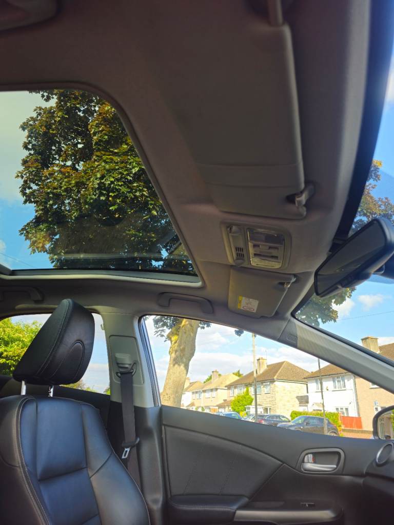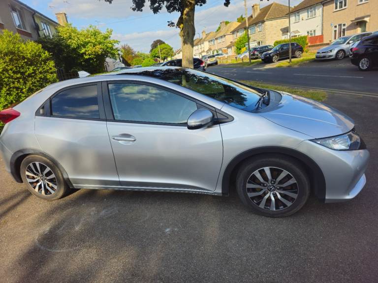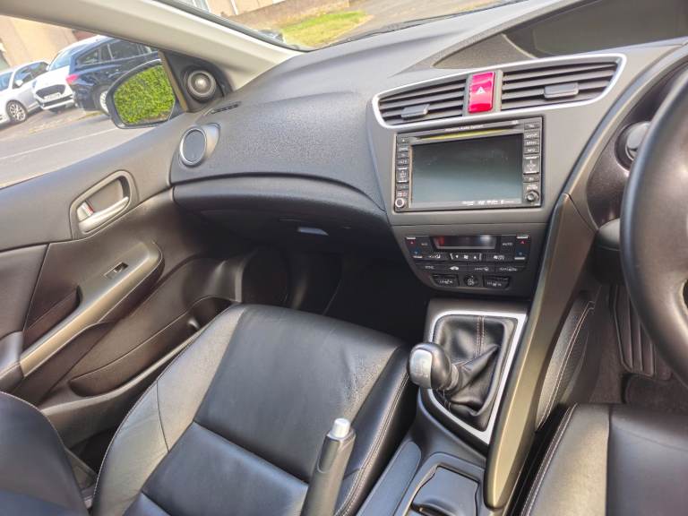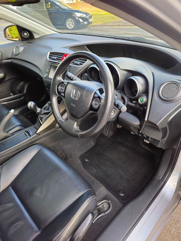 Honda Civic 1.6 I-DTEC SR (TOP OF THE RANGE) Diesel Manual 2015 (14 Reg). 2P Owners. Service History. 1 Year New MOT. 2 Remote Keys. Metallic Silver. Full Black Leather Heated Seats, Panoramic Sunroof With Electric Blind, Reverse Camera, Cruise Control, Satellite Navigation, Touch Screen Infotainment System, DAB, USB, Video Input, Digital Dual Zone Climate Control, Front & Rear Parking Sensors, Power Folding Heated Door Mirrors, DRL Daytime Running Lights, Fog Lights, Remote Central Locking, Magic Rear Seats - They Fold Up As Well As Down, Front & Rear Armrest, F1 Style Flappy Paddles On Steering Wheel, On Board Computer, Tinted Windows, Alloy Wheels, Double Boot Storage With Hidden Compartment, Auto Lights & Auto Wipers. Mark 9 MK9 5 Door Hatchback. Privacy Glass, Cup Holders, Auto Dimming Mirror, Digital Speedometer Dash, Economy Mode. Looks & Drives Fantastic. Very economical and ideal for commuters. you can easily get +70 MPG on the motorway please see pic. Any Inspection Welcome.