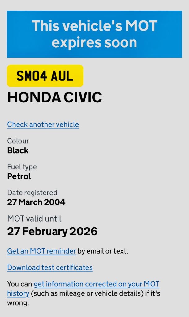 This vehicle has not been reported stolen, scrapped, exported or flagged as unroadworthy.