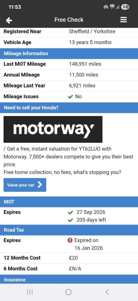 Buy the full report for guaranteed data accuracy, outstanding finance, valuation, milage check & VIN match for £9.99 (normally £19.99)