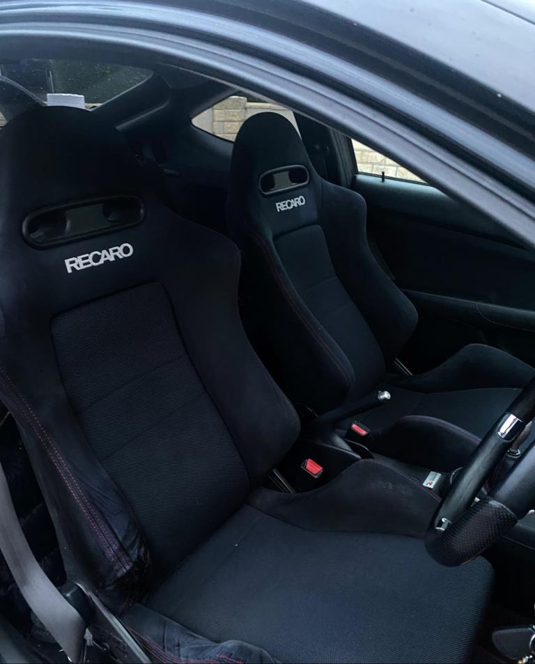 INTERIOR FEATURES BLACK RECAROS – USUAL DRIVER BOLSTER WEAR BUT STILL SOLID. GENUINE NARDI STEERING WHEEL – PREMIUM FEEL AND LOOK. BLACK TYPE R MATS. AIR CONDITIONING HAS BEEN FULLY REGASSED BLOWS ICE COLD AIR.