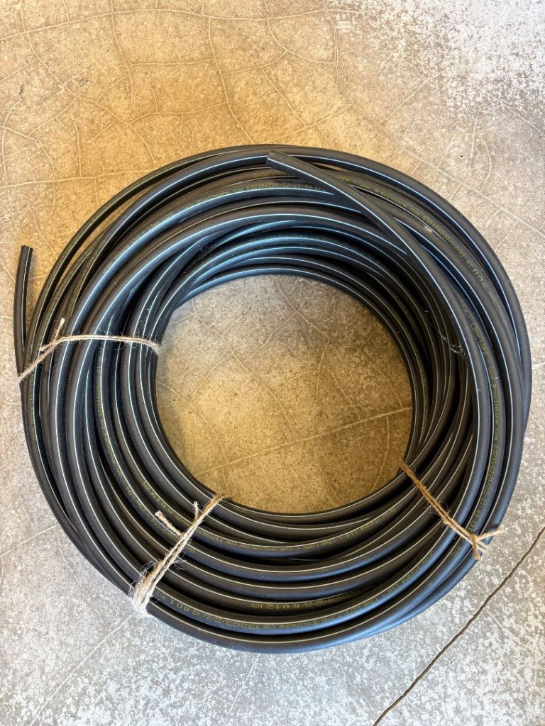 Approx 60 meters x 13mm LDPE Irrigation Pipe (coiled). A small selection of fittings are included in the sale.