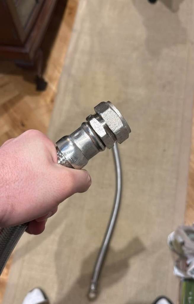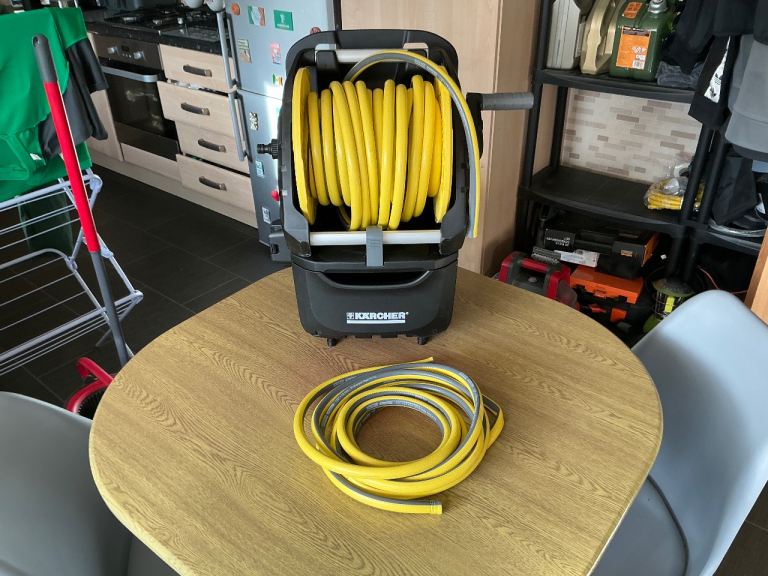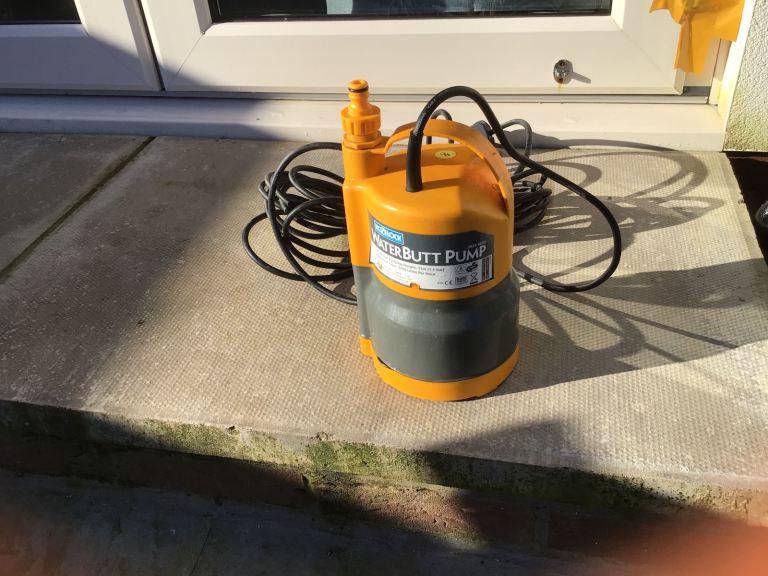 See photos. This pump is to be sunk into water completely then plugged into a 13 amp socket outside the water container. Although several years old it has not been used very much. I used it to water plants, via a micro drip system and timer, when I was on holiday in the summer. The high power can be seen in the last picture which was from a Hozelock hosepipe connector but it unscrews so that any same thread connector could be used.