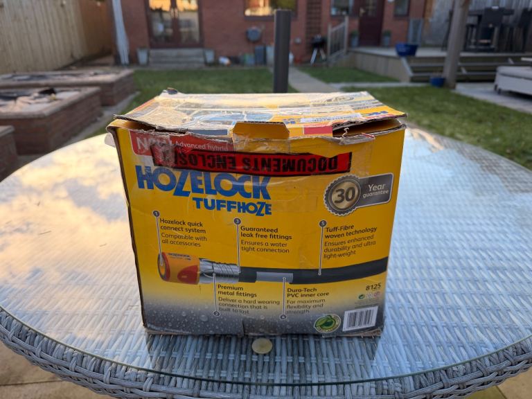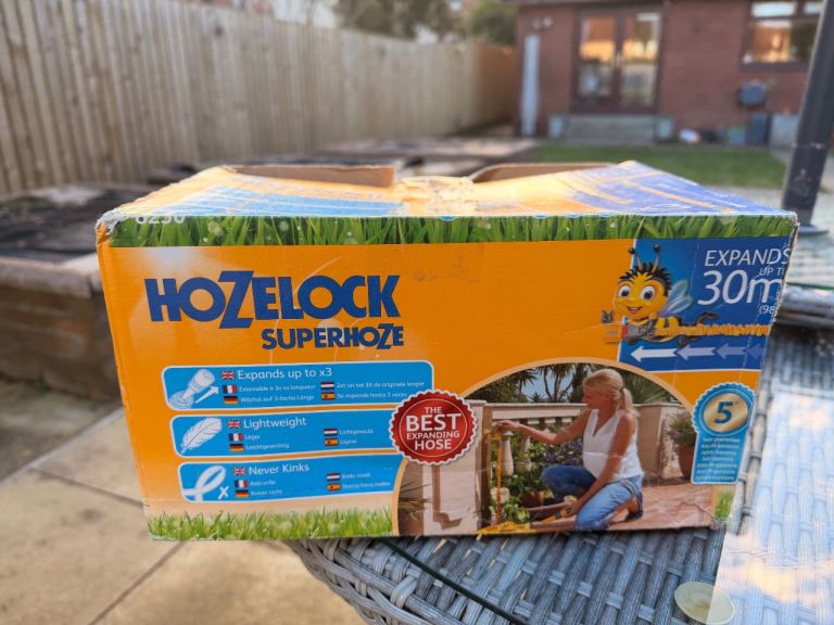 Brand new Hozelock Superhoze expanding garden hose, still boxed and unused.