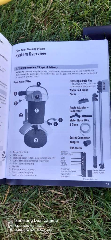 • 4.5m long reach Telescopic pole including hose & connections (20m) without the need for ladders thereby cleaning safely on the ground