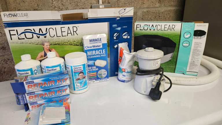 Cleaning kit:- including chlorine, pH, anti foam, testing strips, chlorine floater.