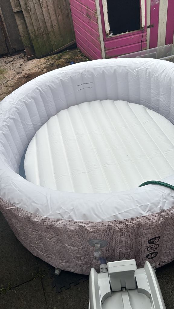 Used a handful of times still brand new, needs a new inflatable top as my dog poped it can be bought from the range £20 also have the spa started kit to go with it (treatment and chemicals) to clean it and spare filters