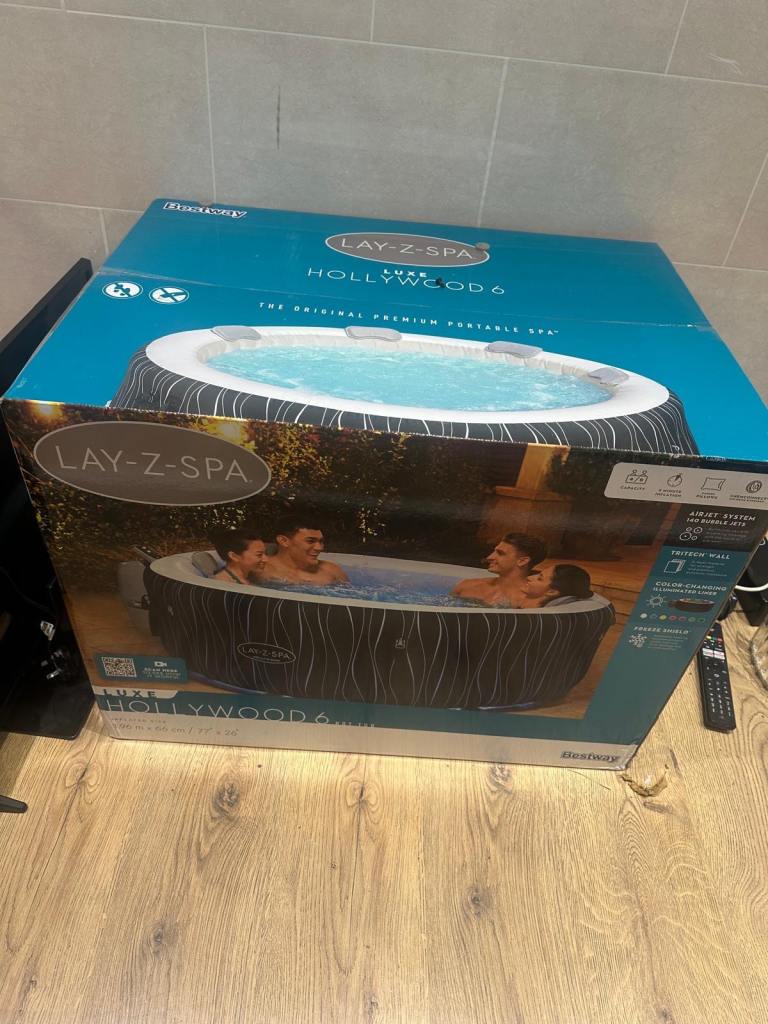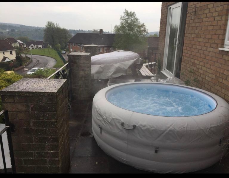 Lay-Z-Spa Singapore 3 Person AirJet Plus Hot Tub. This spa is perfect for gatherings with family or friends, and you can control the heating and bubble features directly from your smartphone. Compatible with Amazon Alexa and Google Assistant, enjoy hands-free operation while the advanced 140 AirJet Plus system soothes your legs and back. With rapid heating capabilities, this inflatable spa transforms any patio into a personal oasis, making every day a special retreat. Height: 60cm. Diameter: 155cm. Weight: 27.63kg. Material: ABS, Metal, PVC. Max User Capacity: 5. Max Heat Capability: 40 °C. Actual Water Flow: 1325L per hour. Water Capacity (at 80%): 804L.