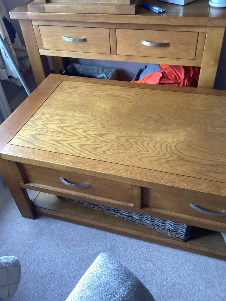 Coffee table 120cm long. 60cm wide 46cm height draws open both sides storage space below table