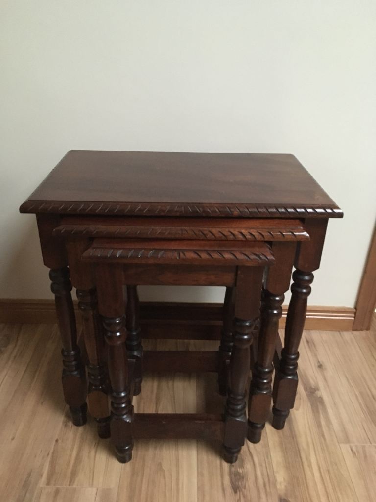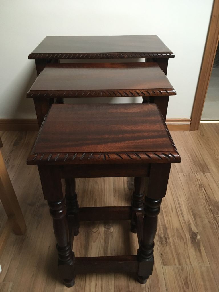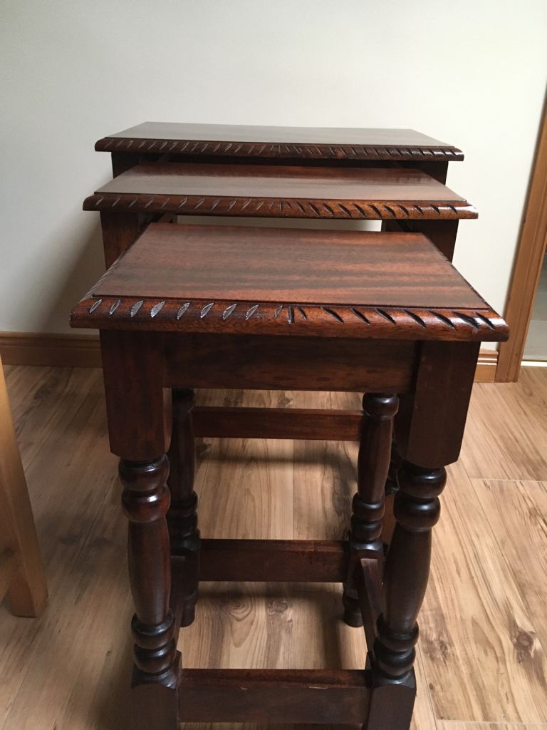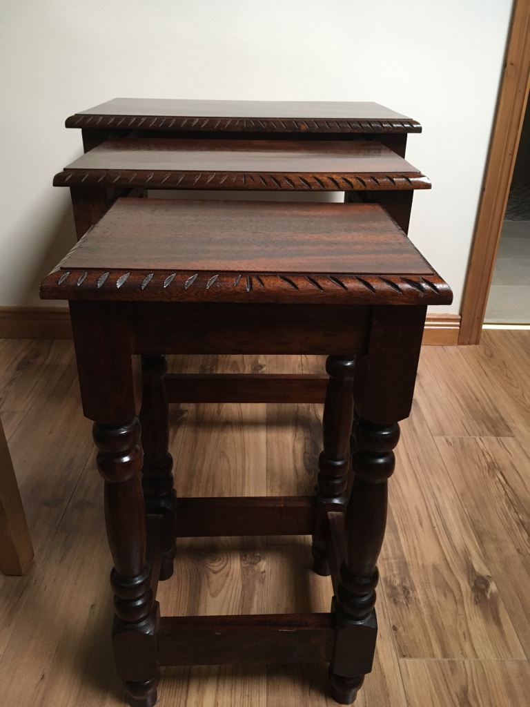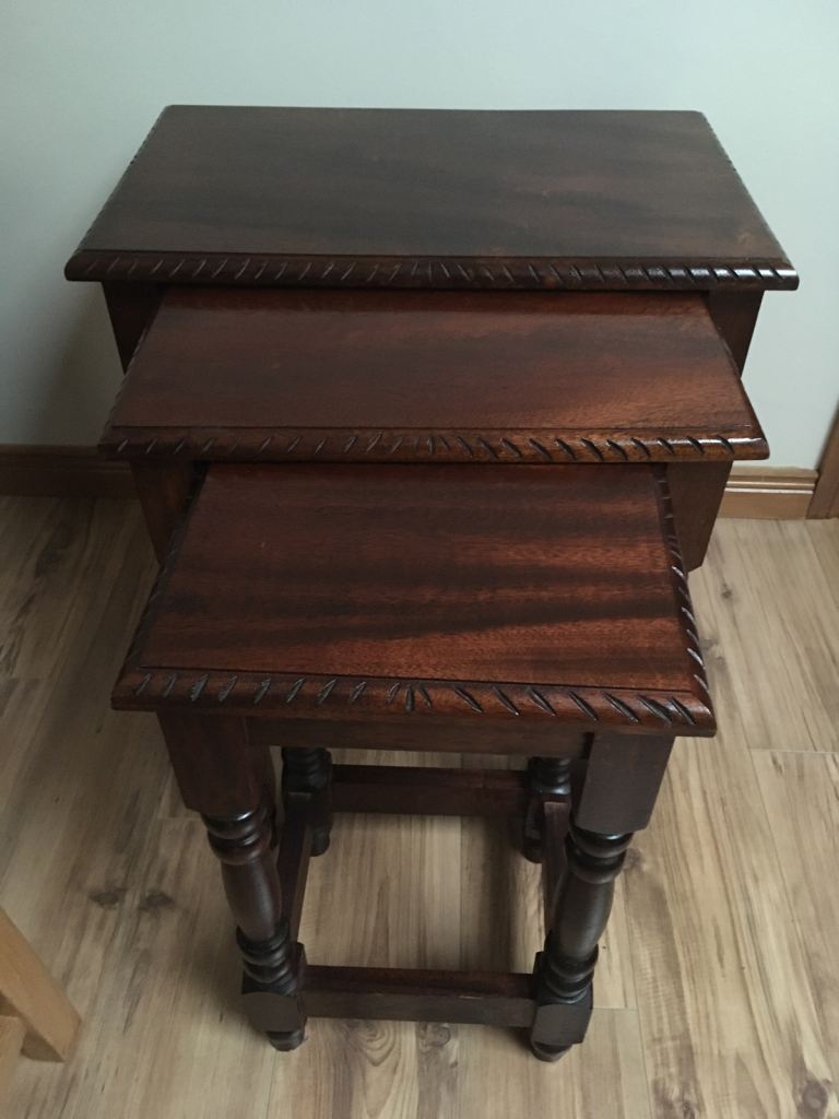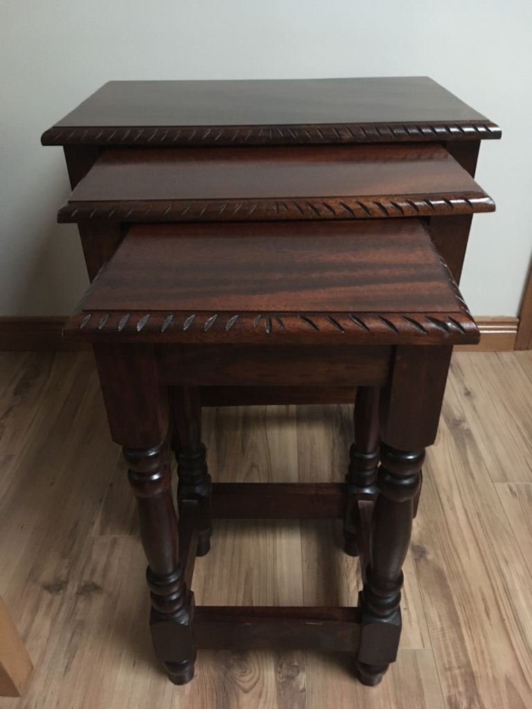 Nest of 3 mahogany ,solid ,heavy handmade tables £130 ono