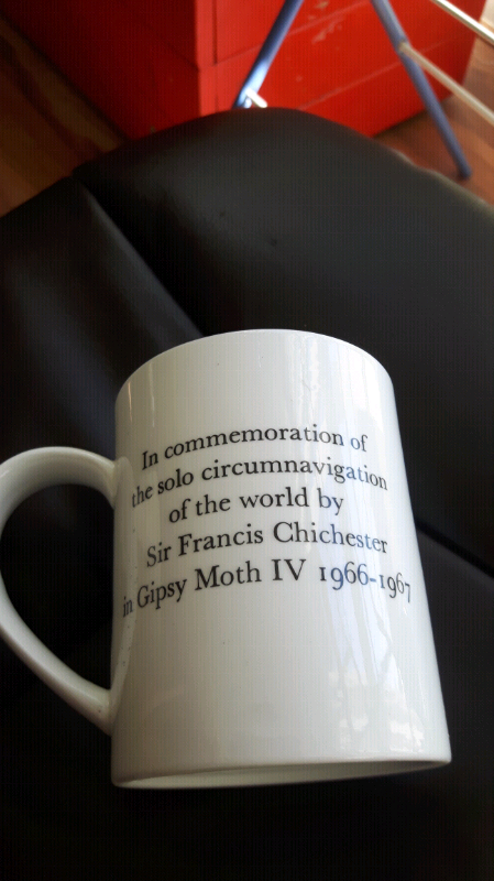 IN COMMEMORATION OF THE SOLO CIRCUMNAVIGATION OF THE WORLD BY SIR FRANCIS CHICHESTER IN GIPSY MOTH 1V 1966 -1967 THIS MUG IS £3