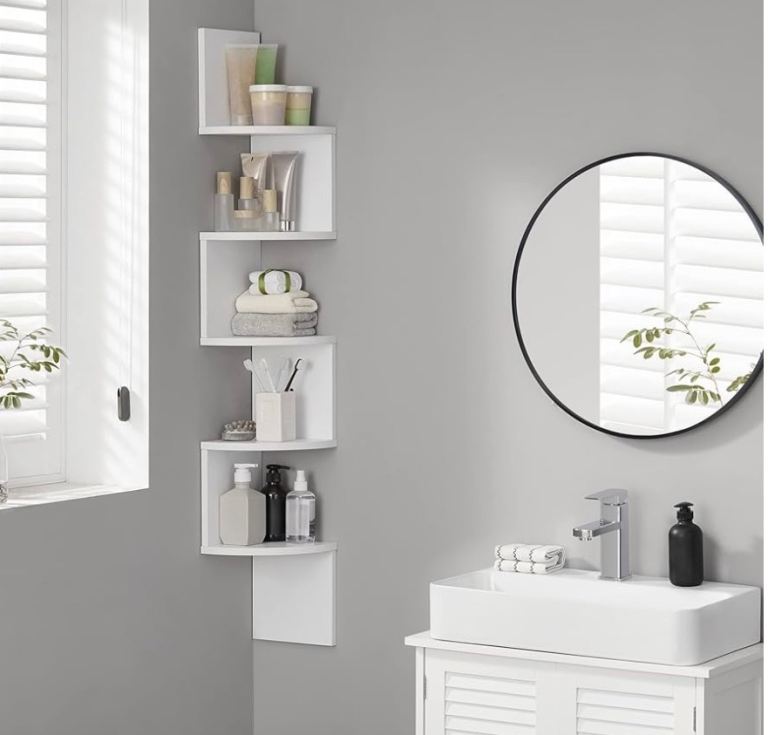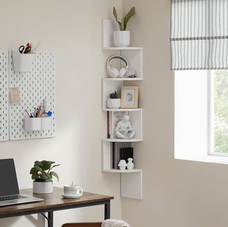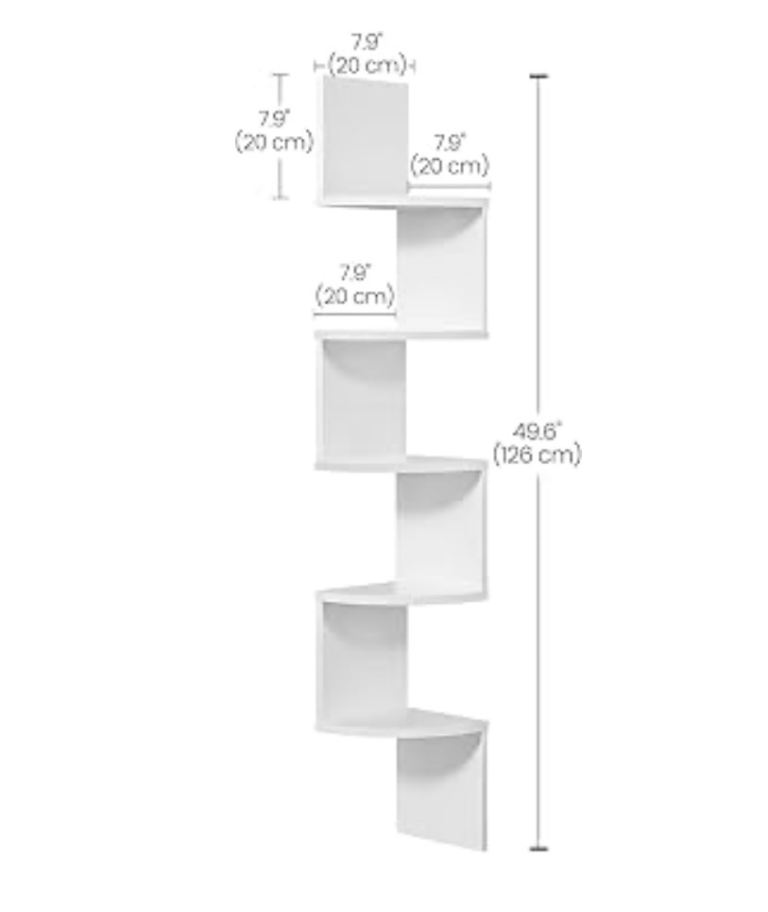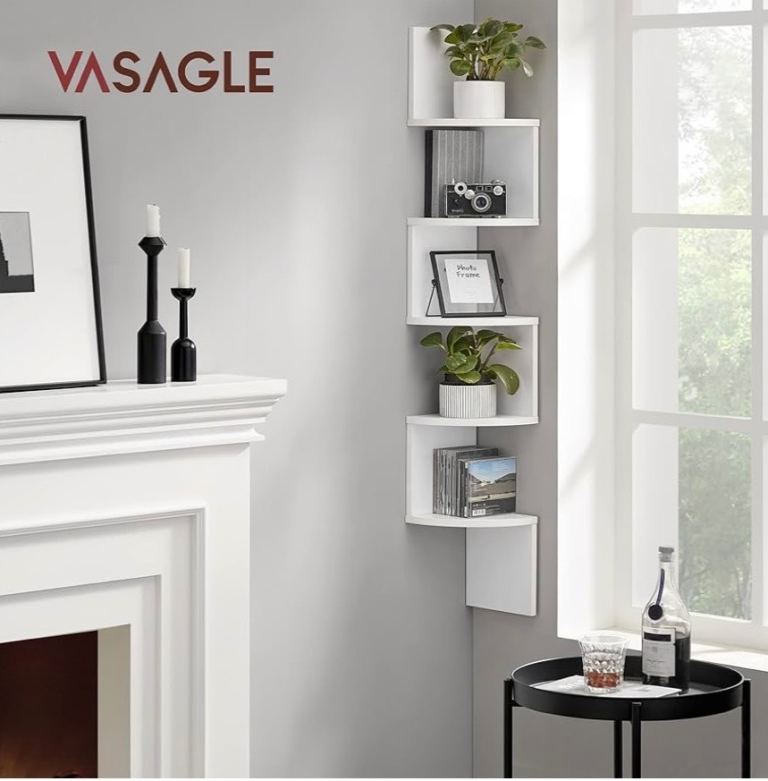 Amazon VASAGLE 5-Tier Corner Shelf, Display Floating Shelf in Living Room, Study, Kitchen, Bedroom, for Plants, CDs, Decorations, Modern, Cloud White