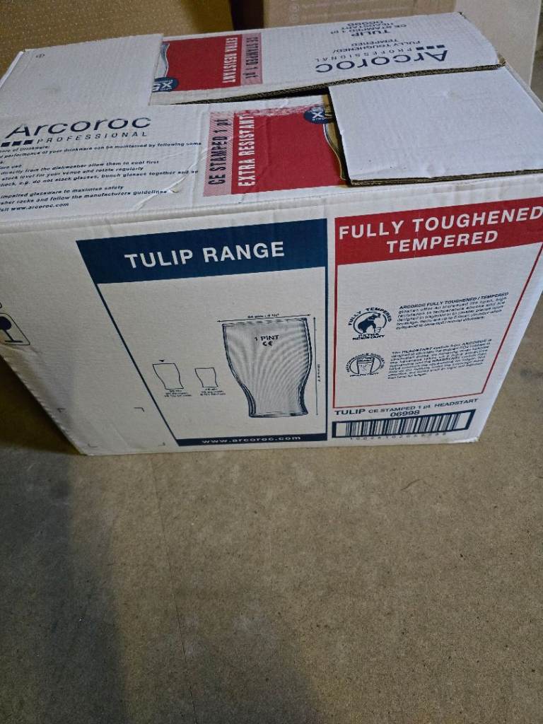 Arcoroc Pint Glasses, very good condition still boxed, no cracks, available for collection only from Le2 8eb Aylestone area of leicester. £15
