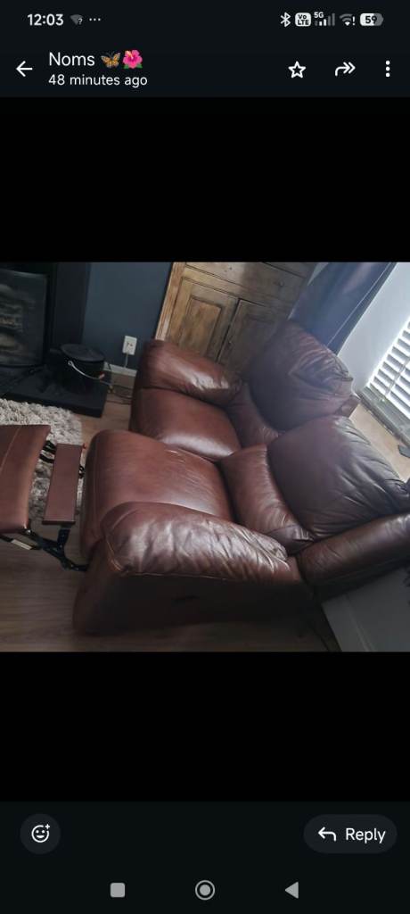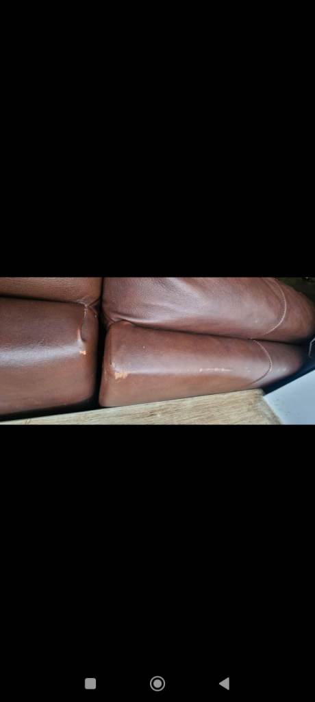Arthur llewellyn Jenkins leather sofa. Roughly 10yrs old. Paid £2000. One side is electric recliner. Few scuffs in pictures. Could be buffed out with leather colour. Very good condition. Hardly used.