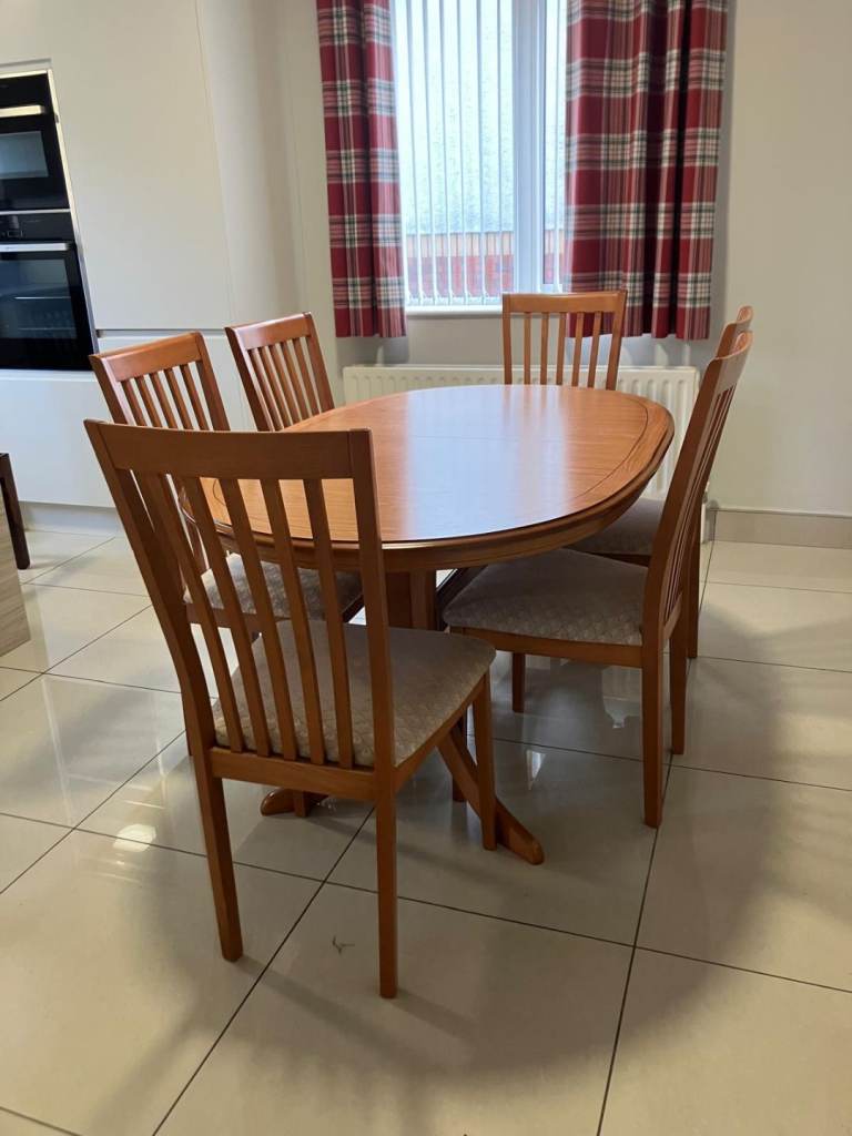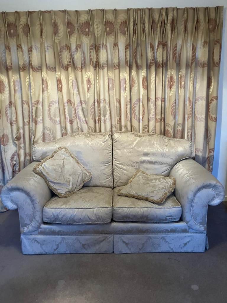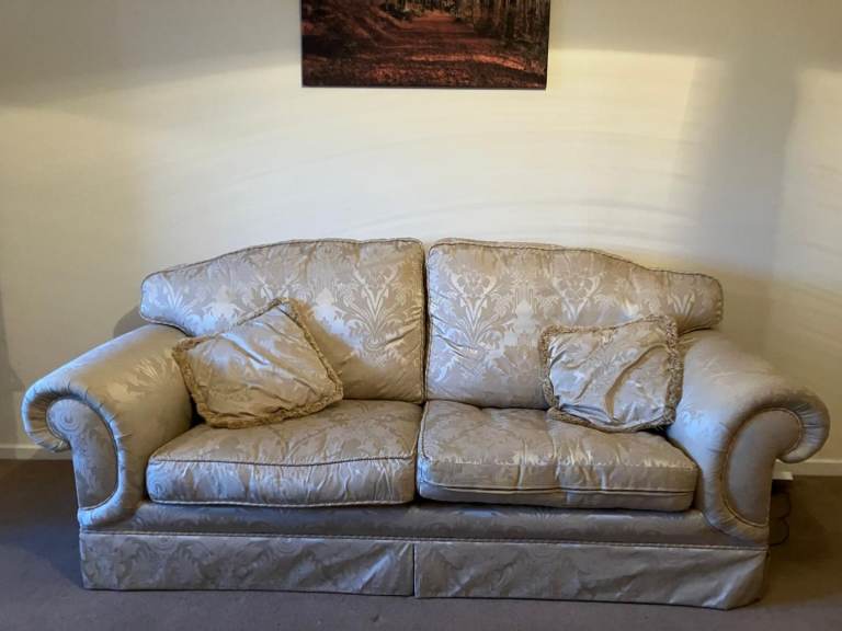 3,2,1 settee £60, table and six chairs £60, mirror and two tables £60