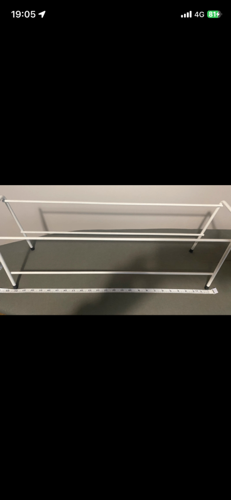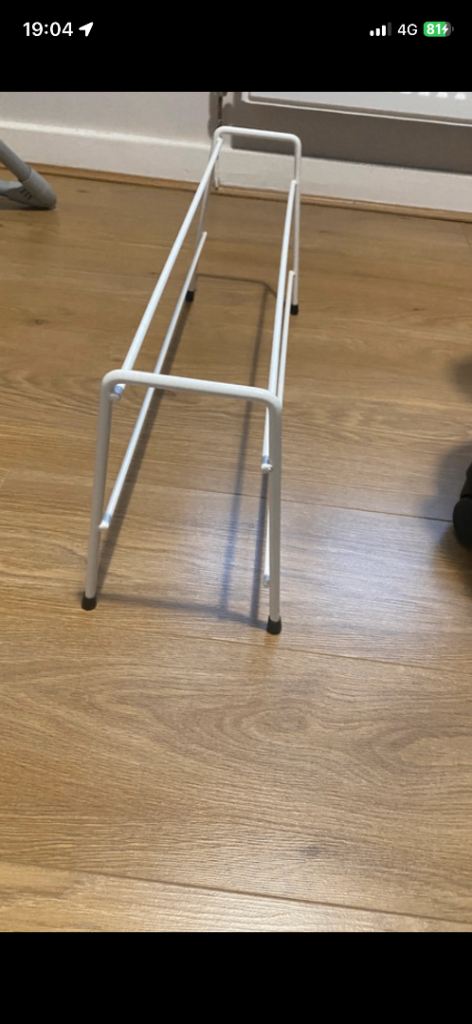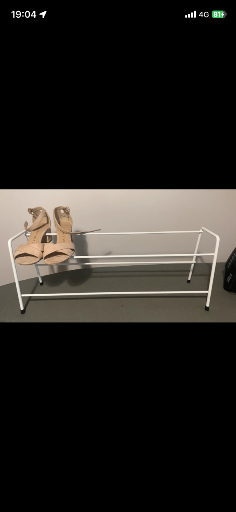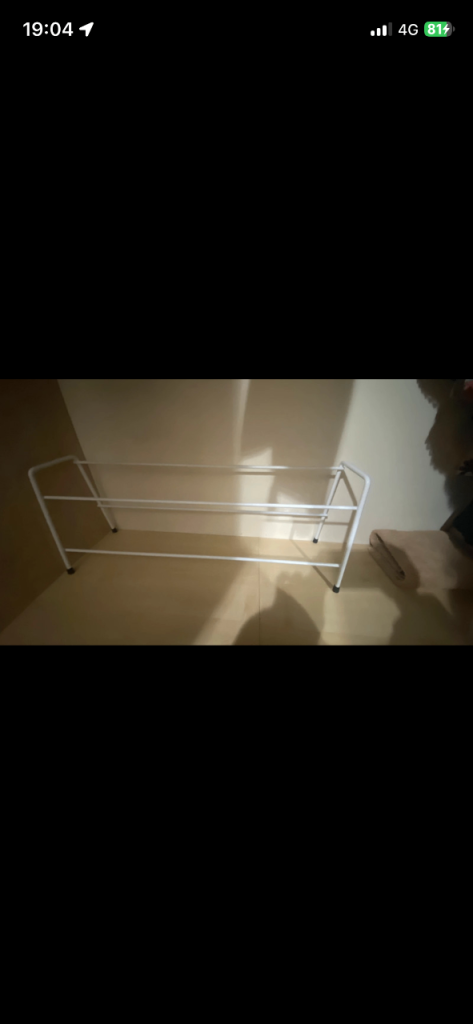 Brand new white metal shoe rack for sale! It's a two tier design, perfect for keeping your shoes organised and off the floor, and ready to use right away