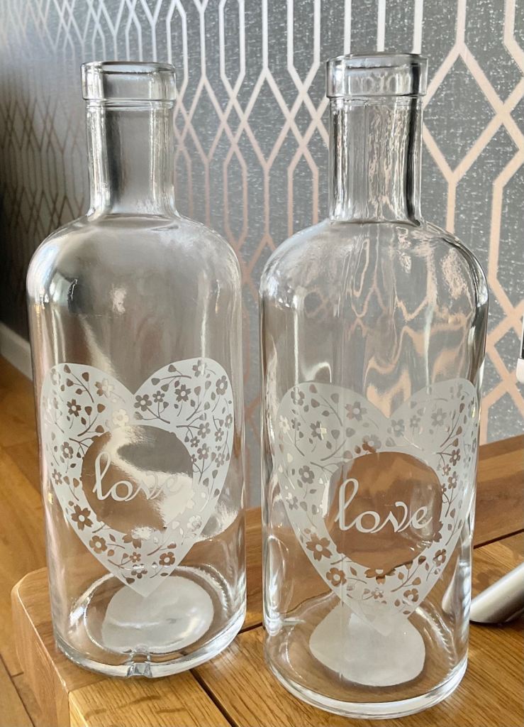Each glass has a lovely heart design with the words 'love'.