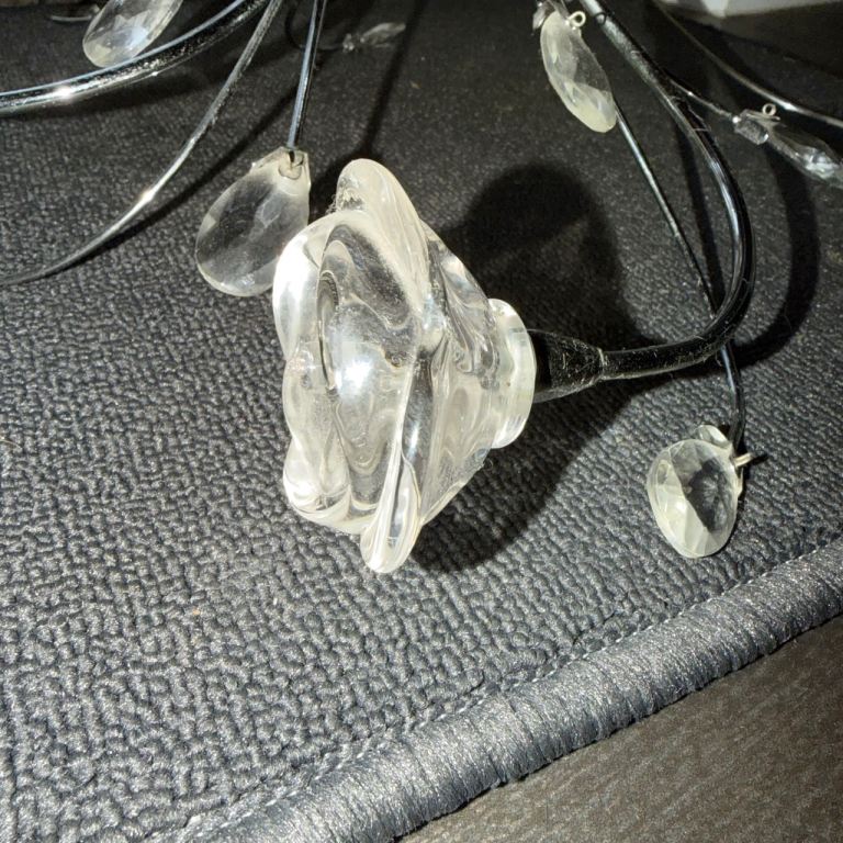The lamp is designed to cast enchanting patterns of light across your ceiling, enhancing the ambiance with its soft glow. The combination of clear glass elements and metallic accents adds sophistication, making it perfect for living rooms, dining areas, or bedroom Free - collection in person