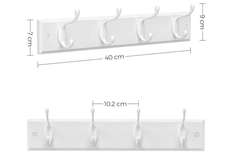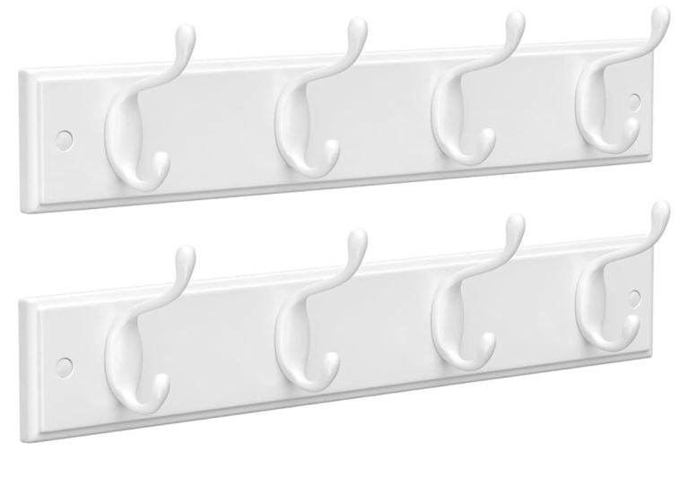 Amazon SONGMICS Set of 2 Coat Racks, Wall-Mounted Coat Hook, 8 Dual Metal Hooks, for Coats, Bags, in The Hallway, Bedroom, Living Room, White