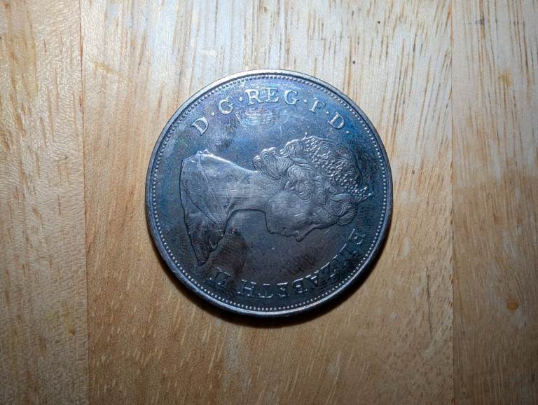 commemorative coin from the 1980s features the Prince of Wales and Lady Diana Spencer.