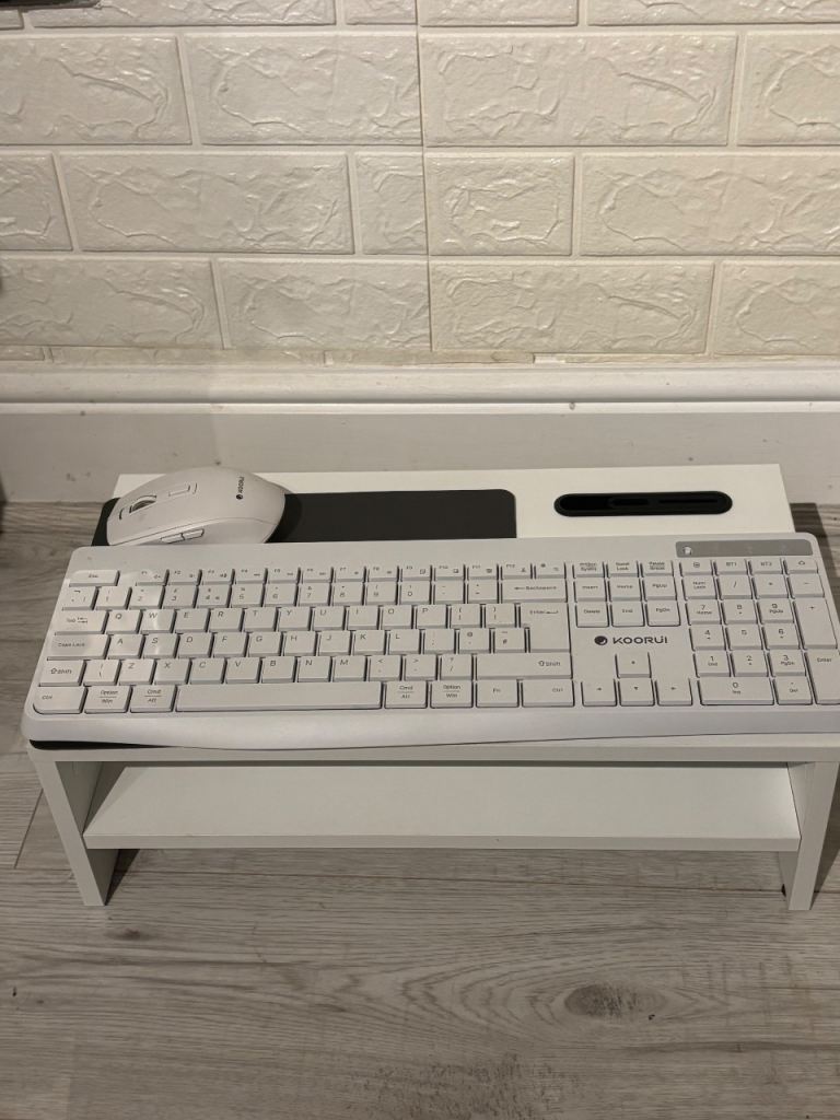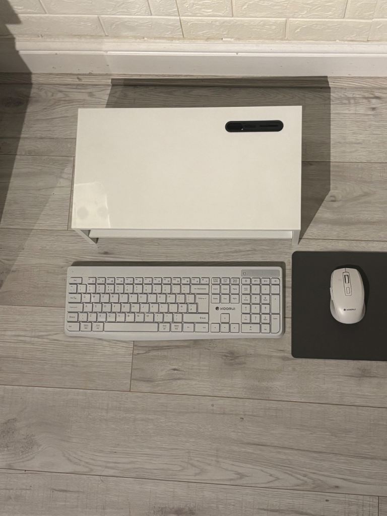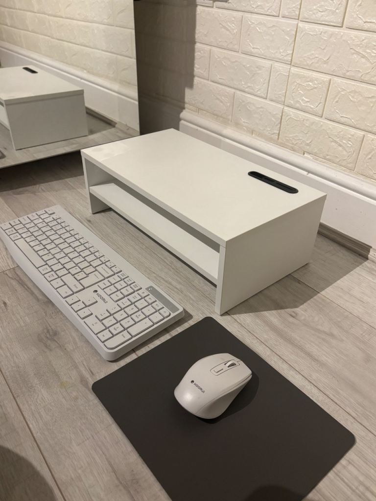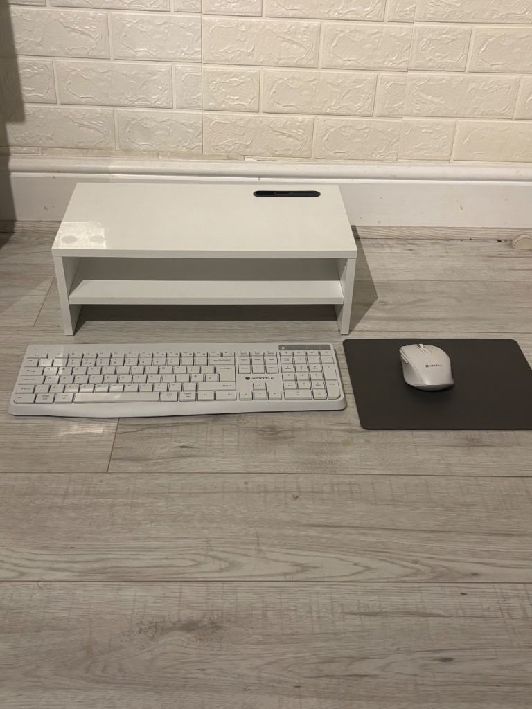 Complete White Home Office Setup – Monitor Stand, Wireless Keyboard & Mouse Bundle