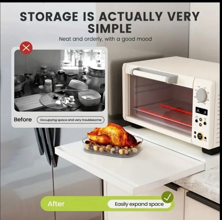 New Countertop Storage Slider, Microwave Sliding Tray, Pull Out Organiser Shelf, Carbon Steel Kitchen Storage Solution
