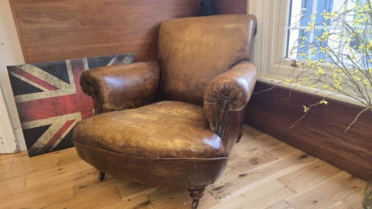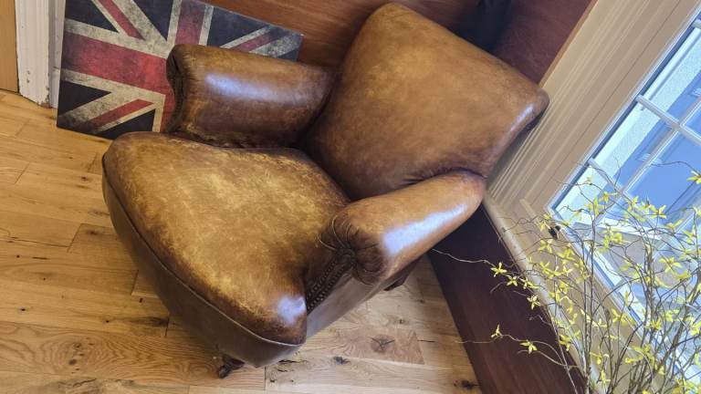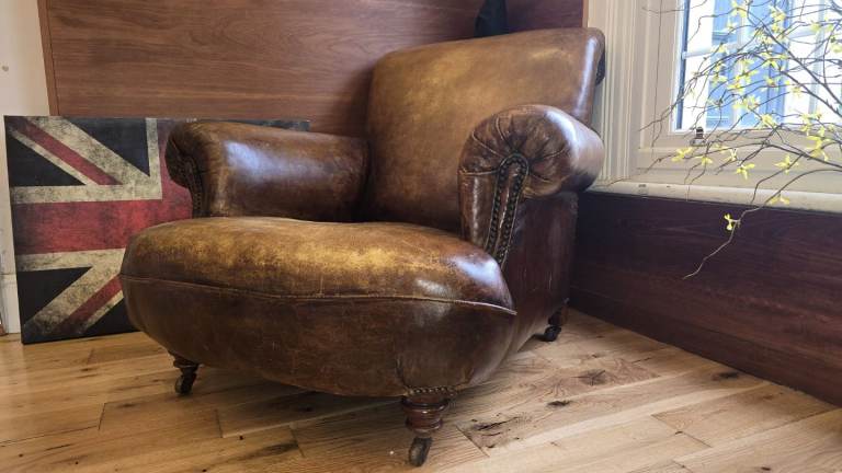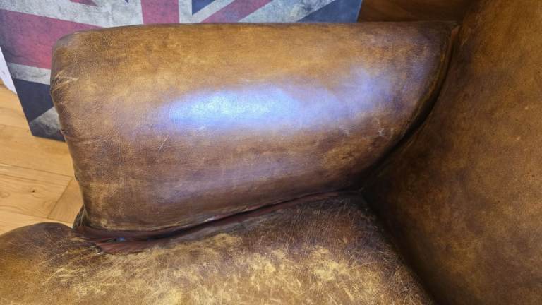 Designer Leather Chairs of Bath distressed vintage leather armchair in need of repair