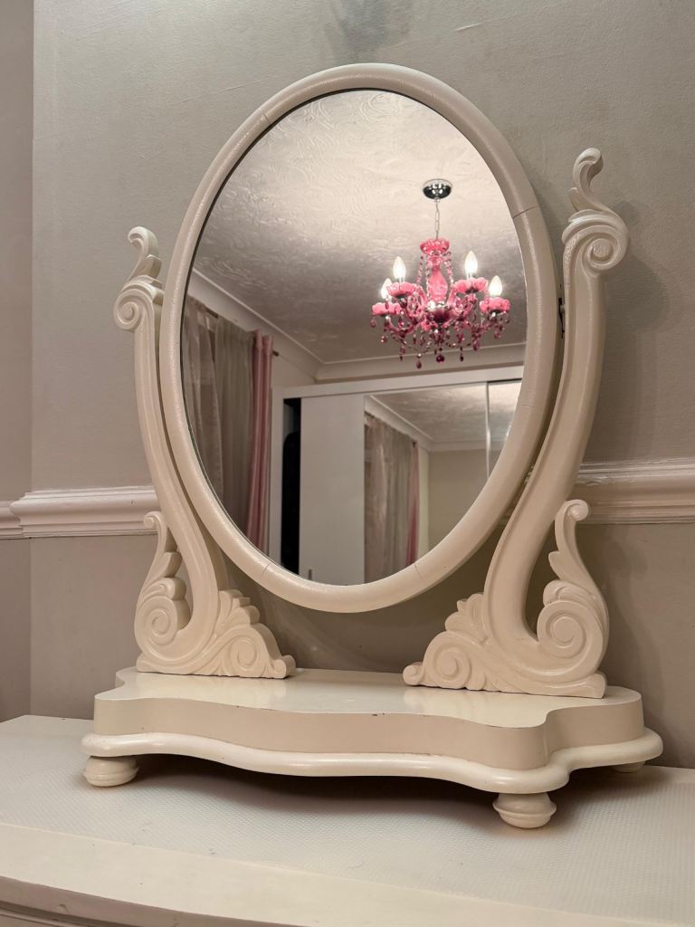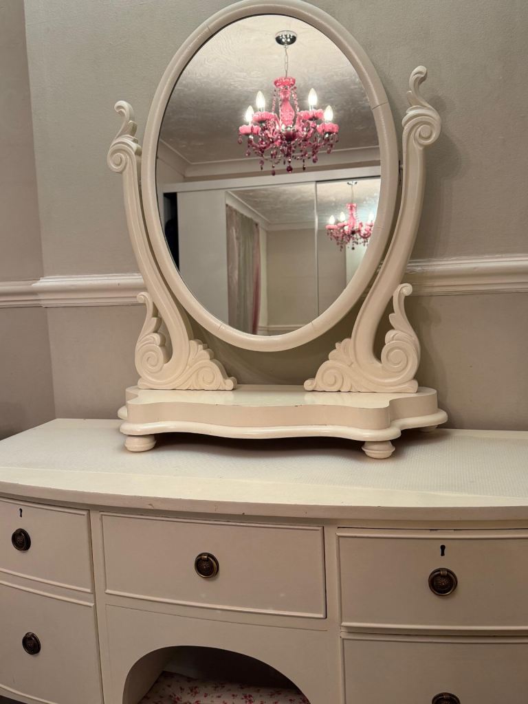 There is a full set of dressing table dresser, mirror and stool. It is in a good condition.
