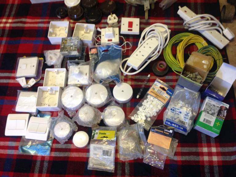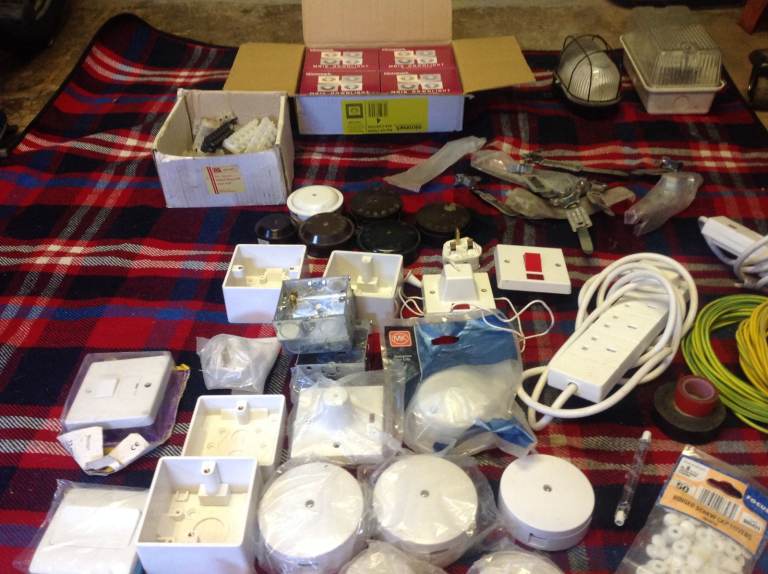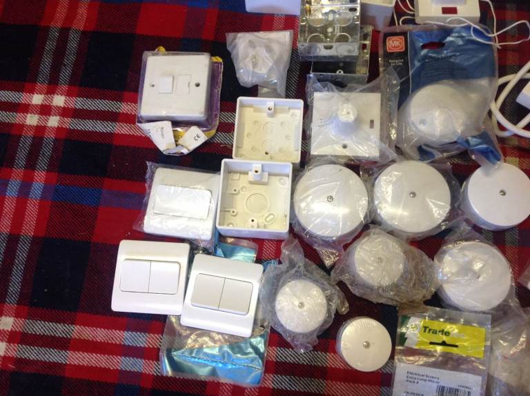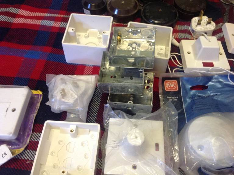 Hundreds of electrical items, switches,junction boxes, pattresses , earth straps, cable clips, job lot or single items, message for prices.