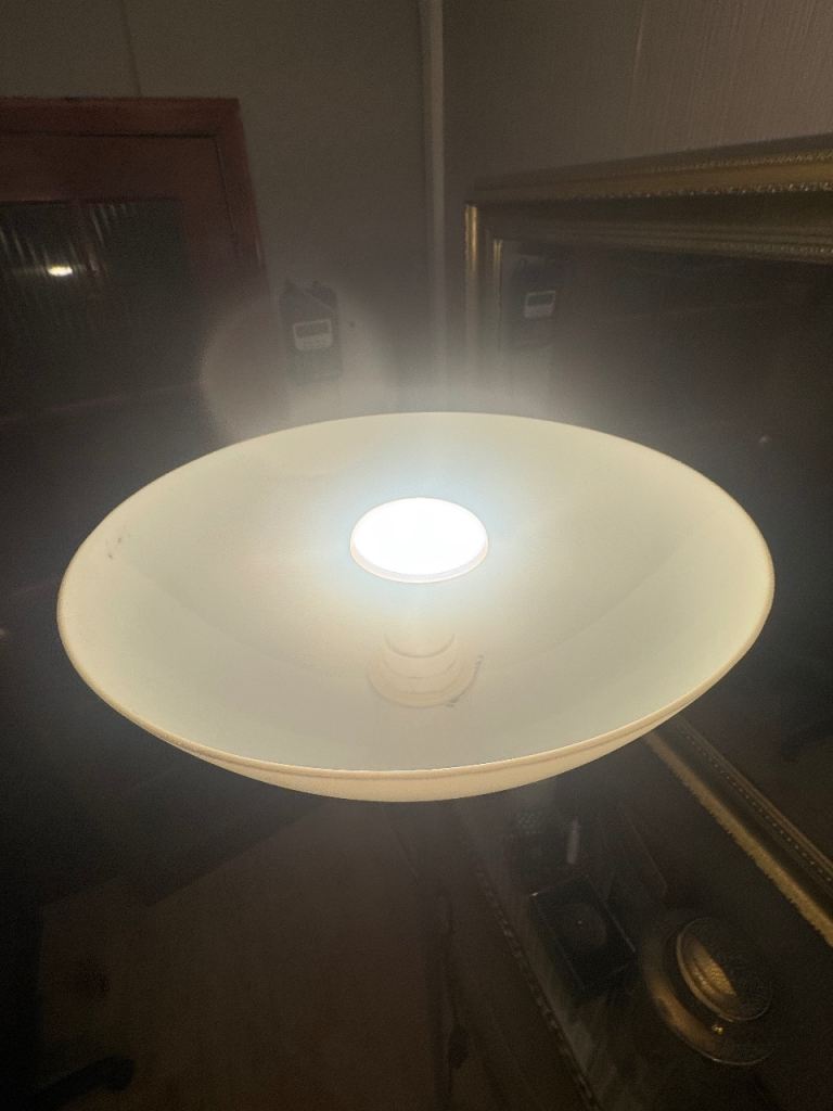 • Lighting: The upward-facing white bowl shade diffuses light evenly across the ceiling, helping to reduce harsh shadows and make small rooms feel more spacious.