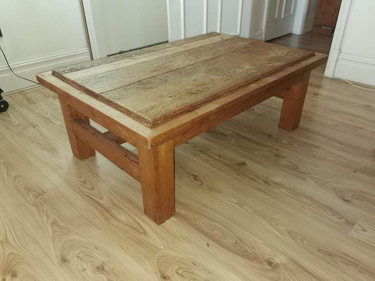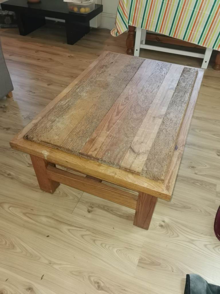 Rustic wood table has general wear