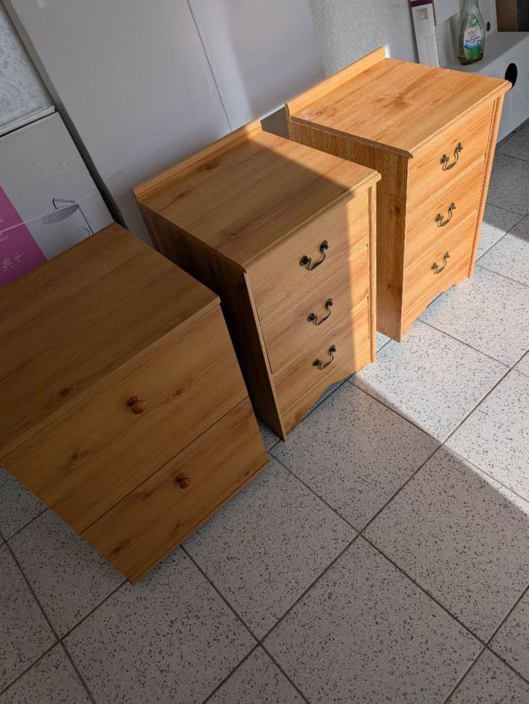 3 modern bedside cabinets / 2 the same!! the lot need to sell very clean £15
