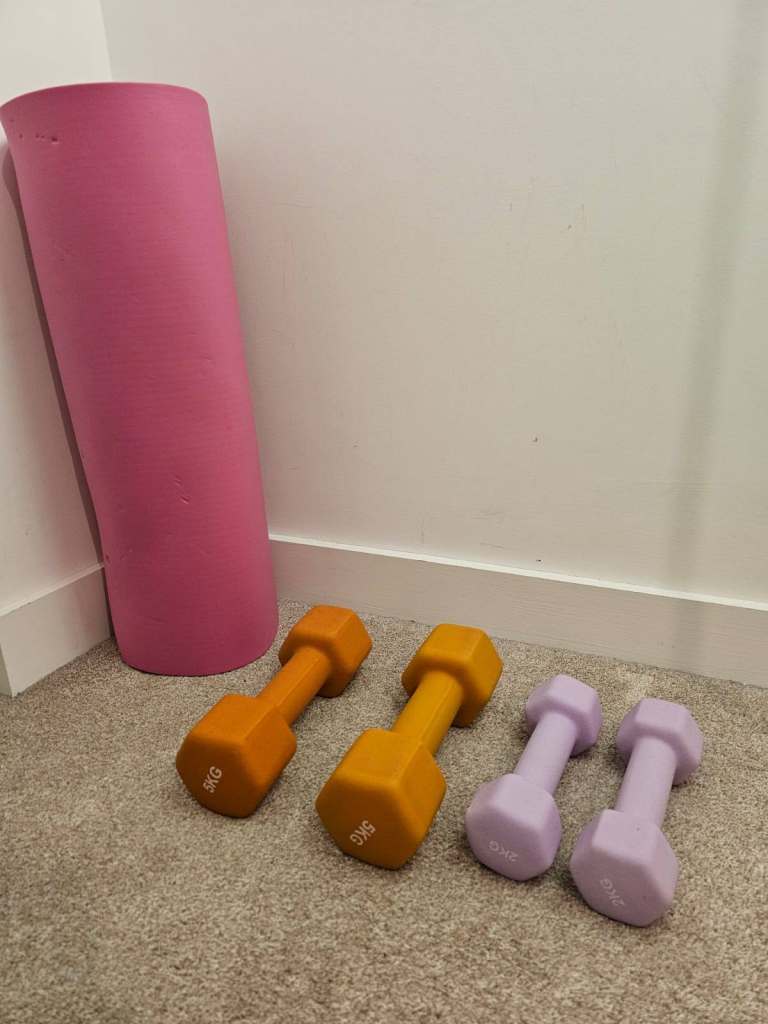 •Gym Set: 2x 5kg Dumbbells, 2x 2kg Dumbbells, 1x Foam Roller.