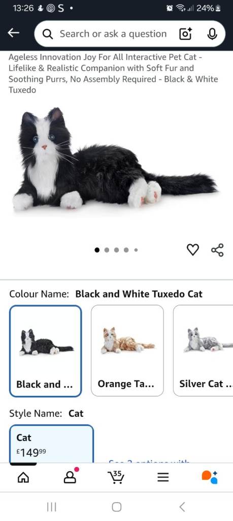 Interactive cat, sold by joy for all. These usually are for dimentia patients ect. to resemble owning a pet.