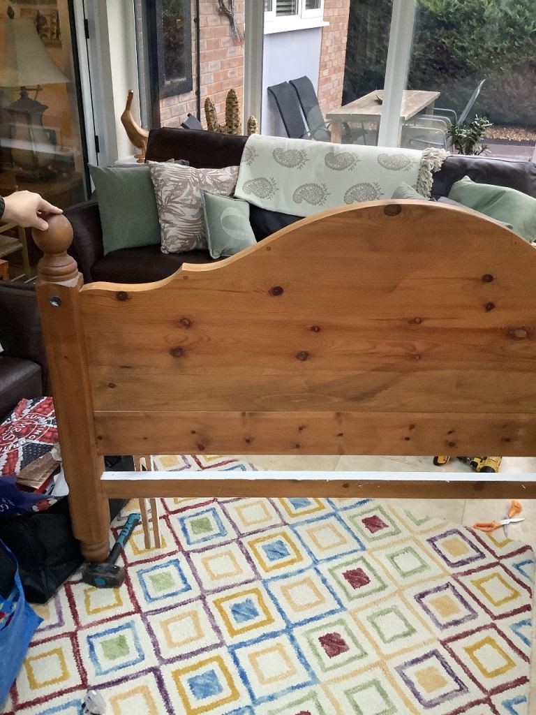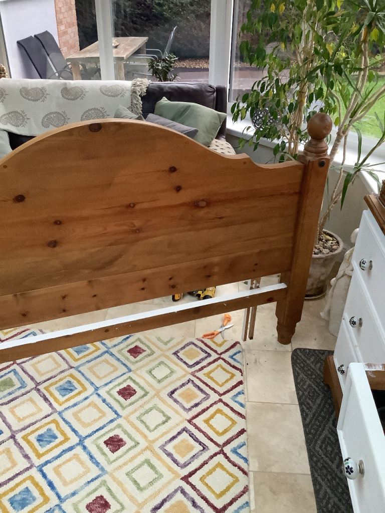 King size pine headboard with painted middle solid made some age related marks new would cost £200+ good condition