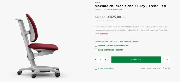 The Maximo children's swivel chair starts small and then grows perfectly and ergonomically with your child (I must say that it's practical for up to a child's hight of 165 cm max, but perfect for smaller children)