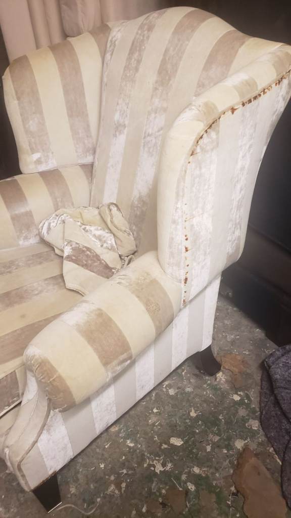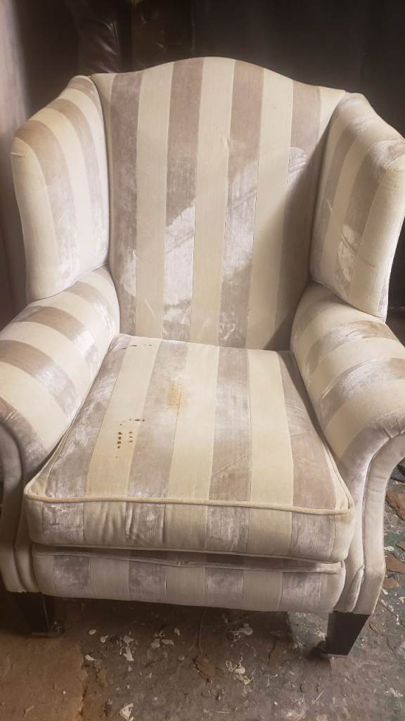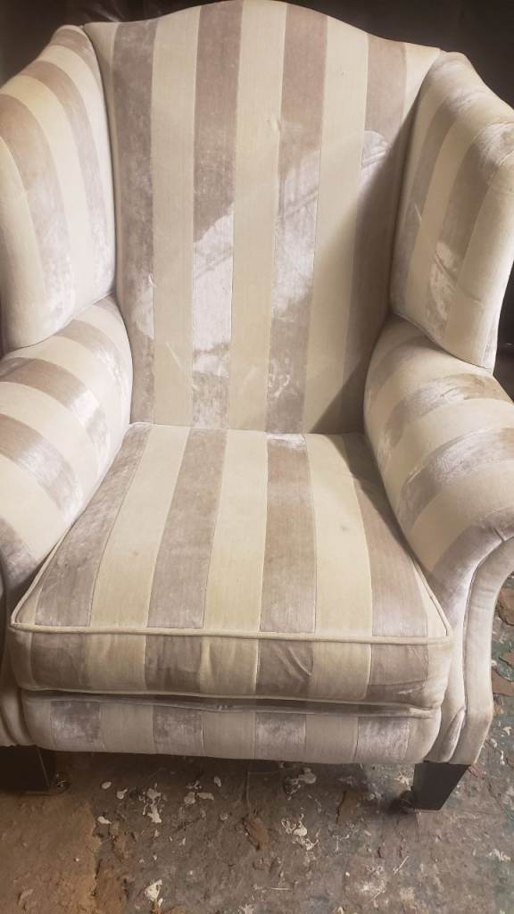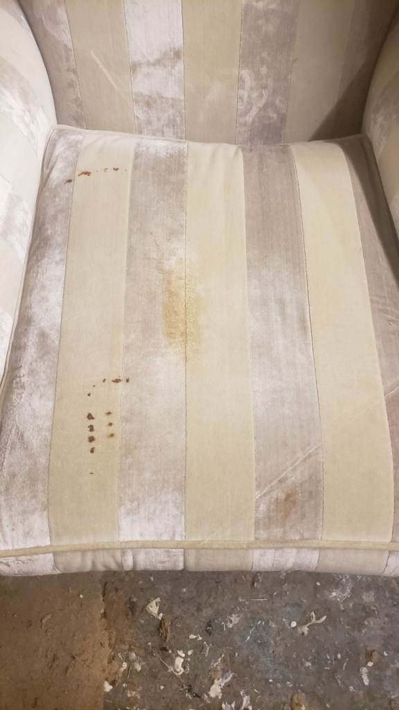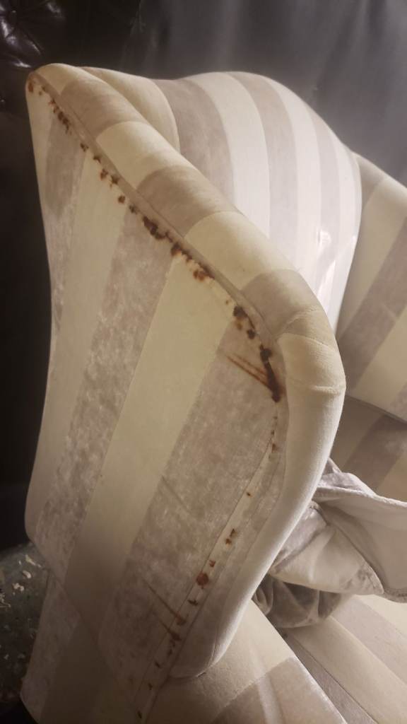 there is some rust on studs and transferred from studs at the front and back of chair socan be used as it is covered with throw/reupholstered