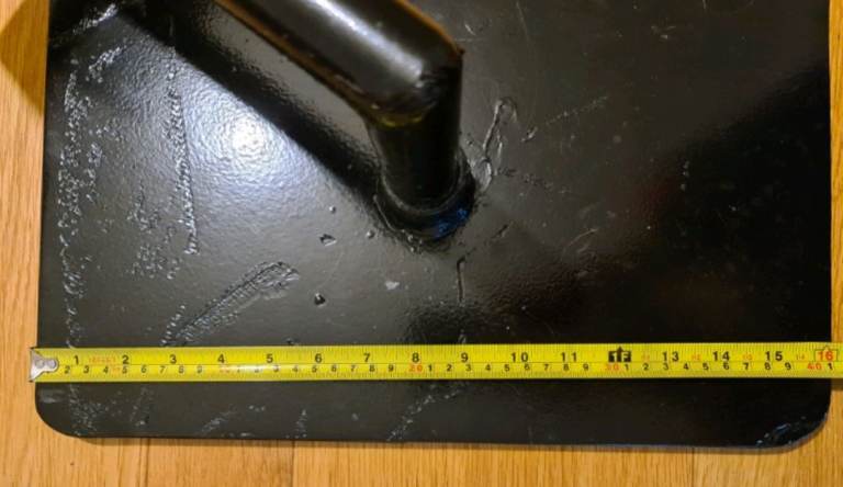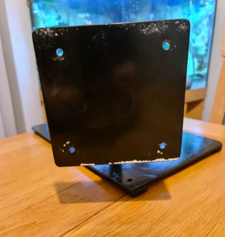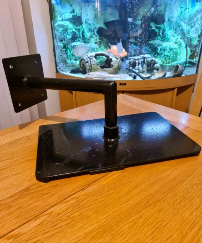 Screen holder attached to the wall. It is hand made. It can hold a big and heavy screen.