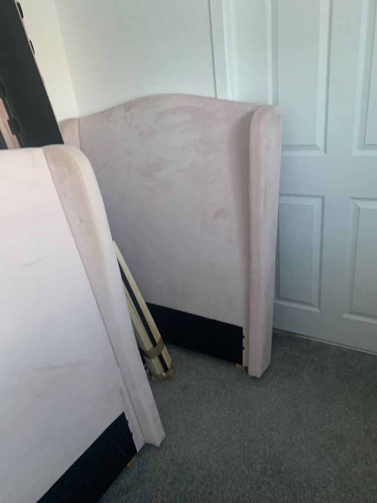 Have two pink single beds for sale already dismantled. No mattress will be sold with beds