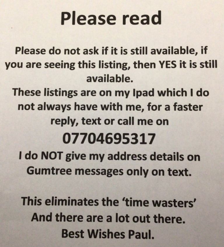 "Beware of fake Gumtree, eBay or escrow sites and invoices"