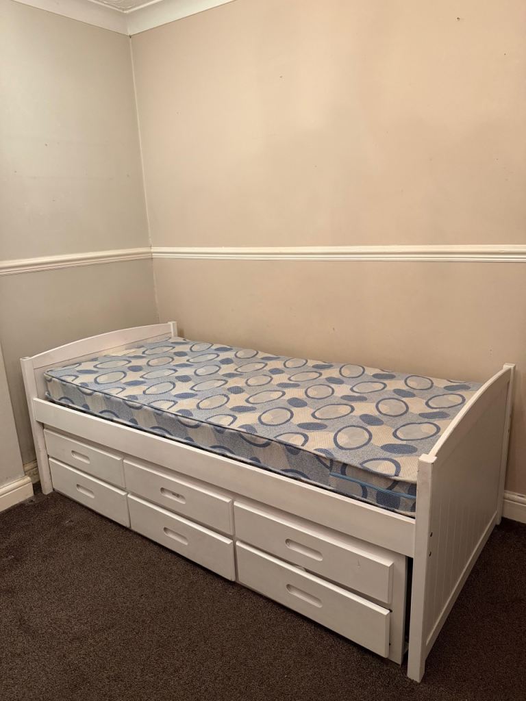 Two trundle beds in fairly good condition. Partly dissembled. It comes with mattresses.