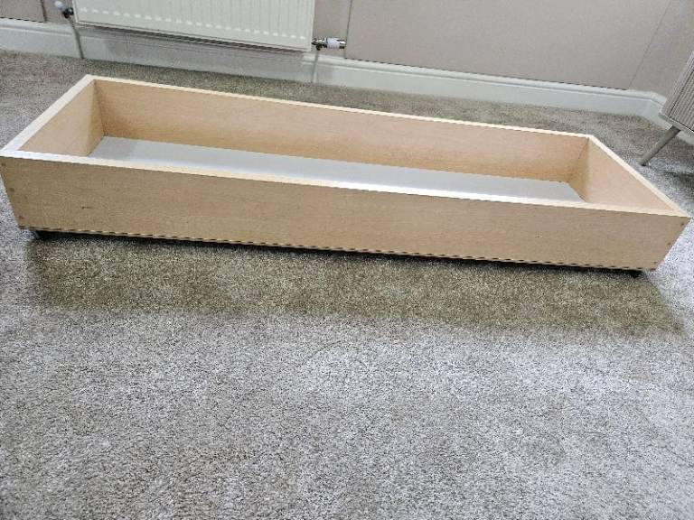 Hand made storage units length 1.4 m width 450mm depth 160mm ideal for storing shoe's etc made from quality materials easy clean on casters for easy movement .l have two of these £5 each pickup only