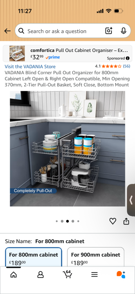 Blind corner pullout shelving