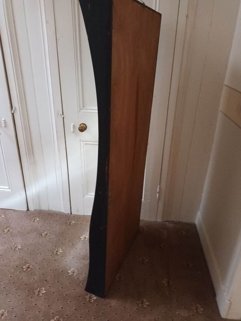 Heavy glass mirror - hook at back to attach to wall. Wooden frame