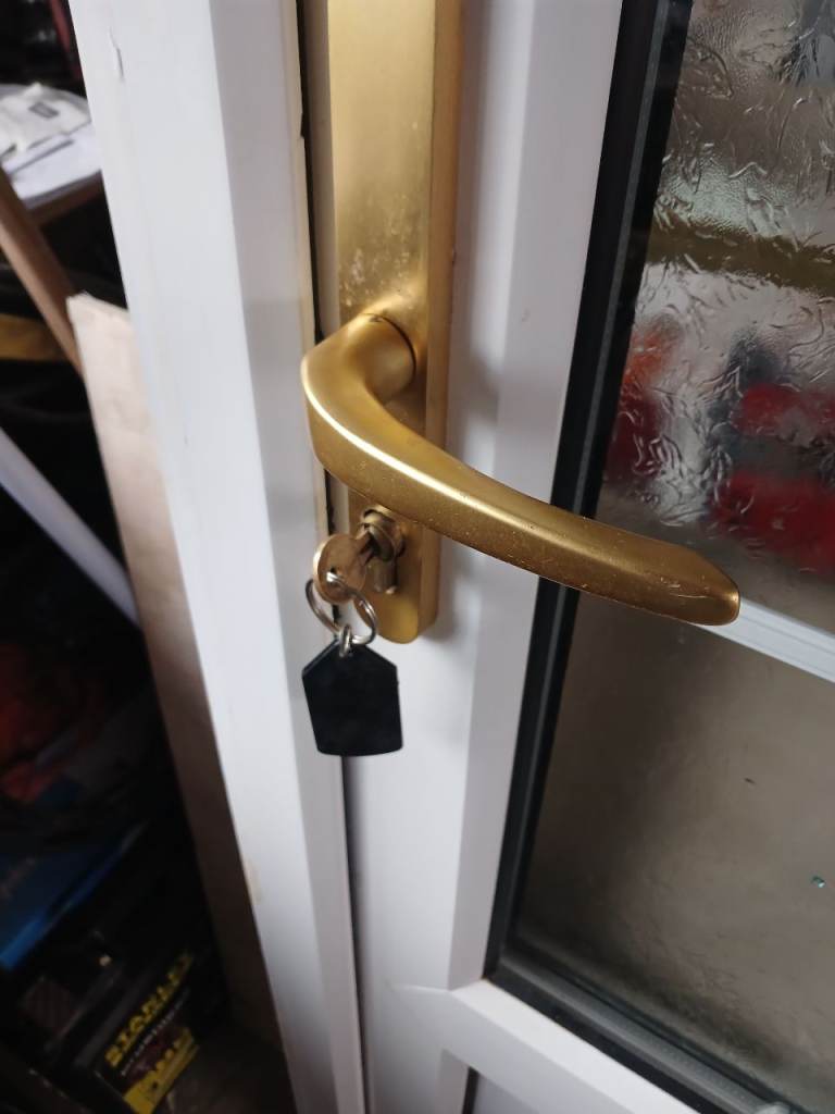 Used door see pictures for size don't deliver ideal for garage or shed comes with key