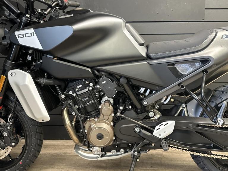 The 2024 Svartpilen 801 is the latest expansion of our naked motorcycle line-up. It combines exceptional versatility, performance, and style for the streets. Its minimalist, scrambler-inspired design features a new compact and powerful parallel-twin engine, perfectly balanced tubular frame, and refined ergonomics for an engaging, intuitive ride. Complete with adjustable WP suspension, state-of-the art electronic aids, and finished with sharp lines and dark colours, the Svartpilen 801 allows each rider to set their own tone for urban riding.