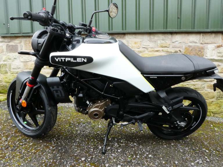 0% finance. £137 a month over 2 years. A Beautifully crafted bike and assembled with premium components to create a reliable, small capacity motorcycle for young riders, the new Vitpilen 125 is the ideal machine to shake things up. Designed to deliver best-in-class performance, the quality WP suspension, cast aluminum wheels, ABS, and traction control combine to inspire confidence in all riders. Finished with modern yet minimalistic styling, the Vitpilen 125 is a stunning machine in terms of both aesthetics and rideability. With new led lighting front and rear you will feel safer riding the dark roads, the easy-shift gearbox for smoother riding and hydraulic bybre brake calipers ensure a safe ride whether short or long distance.