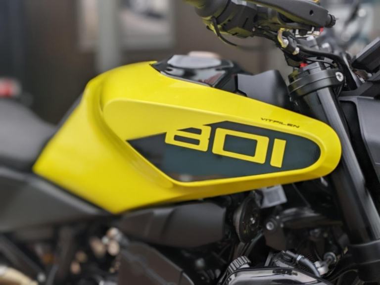 We are proud to offer this very well accessorised 2025 Husqvarna Vitpilen 801 finished in yellow with just 655 miles. This 1 private owner machine benefits from the remaining Husqvarna factory warranty & has had the first service carried out by our local Husqvarna dealership. The list of worthwhile extras include REMUS EXHAUST | GENUINE SILENCER BRACKET | GENUINE HEATED GRIPS | EASYSHIFT ENABLED | ERGO RIDERS SEAT | PILLION SEAT COVER | GENUINE BAR END MIRRORS | PADDOCK BOBBINS | GENUINE BRAKE FLUID RESERVOIR CAP | EVOTECH RADIATOR GUARD.