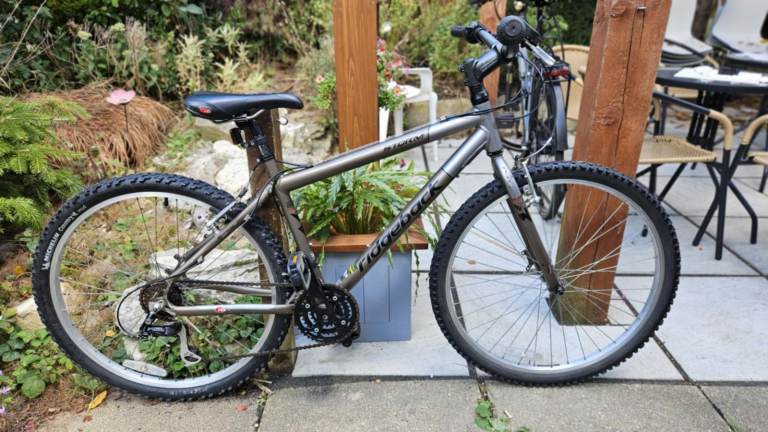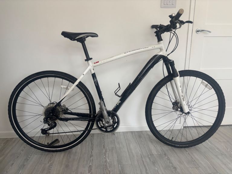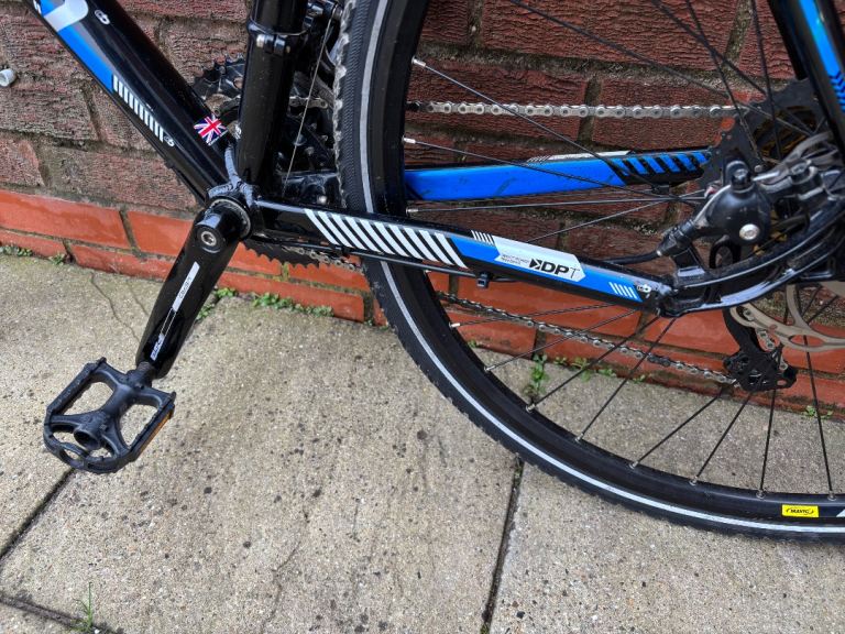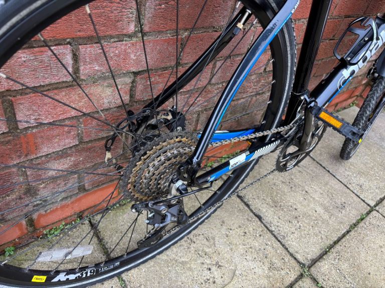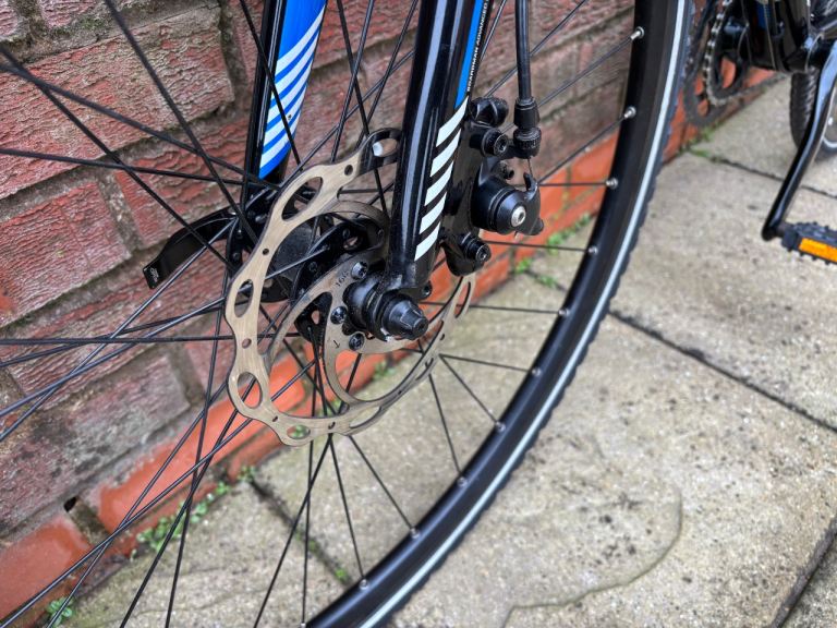 Great conditon hybrid tyres with plenty of thread with the presta valve to schrader valve converters. Mirrors to allow you to see the rear whilst cycling (see pictures). Bottle holder and top quality front and rear mud guards. Very responsive Tektro disc breaks and quick release wheels both front and rear tyres. 2x9 shimano gears provide excellent speed.