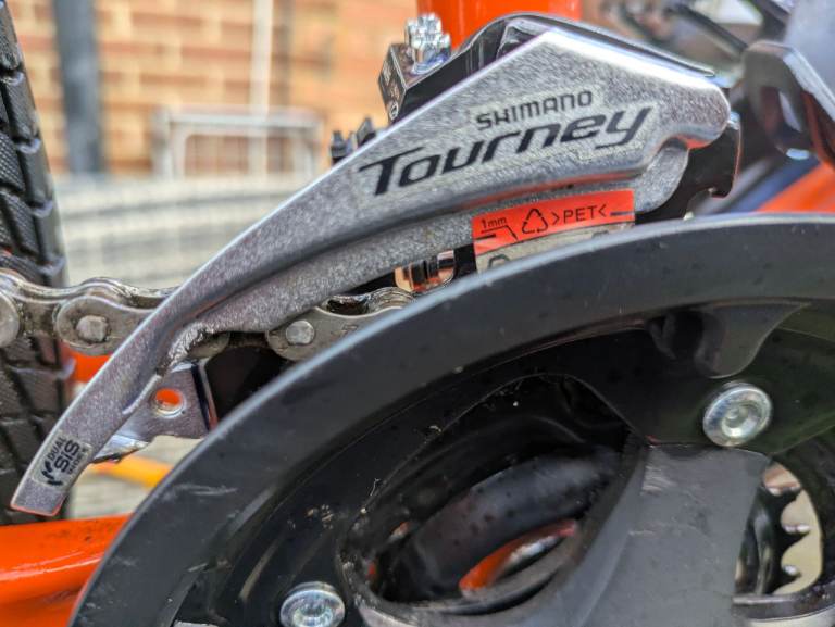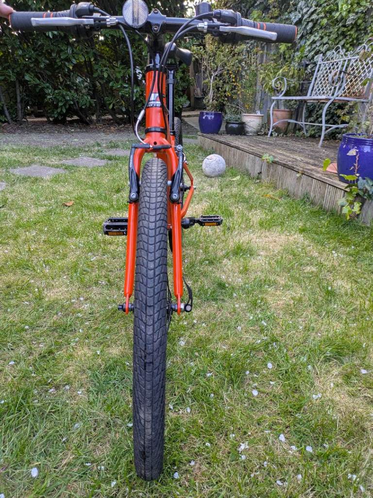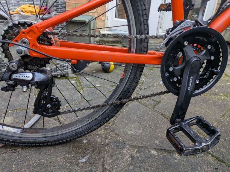 The Carrera Abyss Junior Hybrid Bike with 24" wheels is a high-quality aluminium frame bike designed for young riders. Featuring a flat bar handlebar, 21-speed grip shifter, and V-brake system, this sporty orange bike offers a smooth and safe riding experience. With adjustable seat and derailleur gears, this unisex kids bike is perfect for young cyclists looking for a reliable and stylish ride. Made in the United Kingdom by the trusted brand Carrera, this hybrid bike is sure to provide hours of fun and exercise for kids.